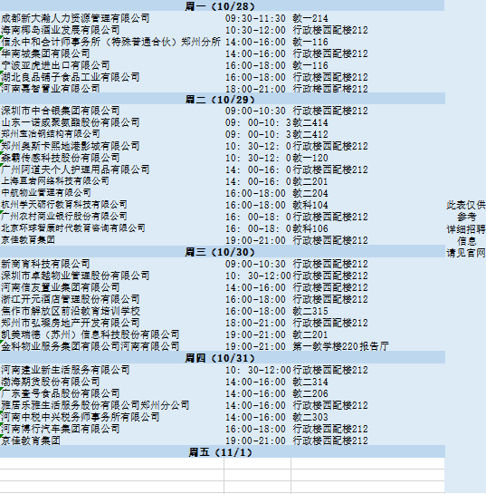 2019年10月28日至10月31日专场招聘会预览